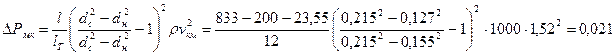 Перепад давления в турбобуре найдем по формуле (6.19):