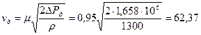Возможный перепад давления в долоте при использовании гидромониторного эффекта (υд ≥ 80 м/с) определим по формуле:
