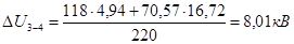 Очевидно, что у нагрузки 3 уровень напряжения находиться в допустимом пределе, а у нагрузки 4 потеря напряжения составляет 20,5 + 8,01 = 28,51 кВ. Следовательно, целесообразно установить в конце участка 3-4, т.е. на ПС 4 батарею статических конденсаторов. Определим необходимую мощность конденсаторов: