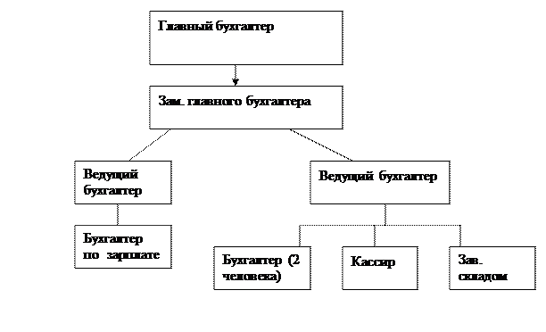 Уменьшился коэффициент абсолютной ликвидности. Его значение за 2007-2009 года ниже рекомендуемого значения. У предприятия отсутствуют свободные денежные средства. Но с другой стороны, деньги не лежат «мертвым грузом», а вкладываются в деятельность предприятия. Увеличился коэффициент промежуточной ликвидности, но все же его значение ниже нормативного. Большую долю ликвидных средств составляет дебиторская задолженность, часть которой трудно своевременно взыскать. По сравнению с 2007 и 2008 годами коэффициент текущей ликвидности в 2009 году увеличился. Превышение оборотных активов над краткосрочными финансовыми обязательствами обеспечивает резервный запас для компенсации убытков, которые может понести предприятие при размещении и ликвидации всех оборотных активов, кроме наличности. Чем больше этот запас, тем больше уверенность кредиторов в том, что долги будут погашены. Значение коэффициента автономии за анализируемый период не соответствует нормативному значению, но происходит его увеличение в 2008-2009гг. Чем выше значение коэффициента автономии, тем более финансово устойчиво, стабильно и независимо предприятие. Значение коэффициента соотношения заемных и собственных средств намного больше рекомендуемого значения, но в 2009 году происходит его уменьшение. Это значит, что предприятие при снижении этого коэффициента сможет полностью погасить кредиторскую задолженность, ликвидировав свои активы. Значения коэффициента обеспеченности СОС и коэффициента маневренности не соответствуют рекомендуемым значениям за весь анализируемый период. У организации отсутствуют собственные оборотные средства. 2.4. Организация бухгалтерского учета в организации Бухгалтерский учет в организации ведется с применением журнально-ордерной формы. Бухгалтерский учет организации ведется в соответствии с рабочим Планом счетов. Внешняя бухгалтерская отчетность включает в себя: 1) бухгалтерский баланс форма № 1; 2) отчет о прибылях и убытках – форма № 2; 3) приложения к бухгалтерскому балансу – формы №№ 3, 4, 5; 4) аудиторское заключение, сформированное независимой сторонней аудиторской организацией и подтверждающее достоверность бухгалтерской отчетности; 5) пояснительная записка. Годовой отчет, годовая бухгалтерская отчетность, в том числе отчет о прибылях и убытках рассматривается и утверждается общим собранием акционеров. Бухгалтерская отчетность предприятия представляется в адрес и сроки в соответствии с законодательством Российской Федерации и учредительными документами. Утвержденная бухгалтерская отчетность предприятия публикуется не позднее срока, установленного учредительными документами предприятия. Штат бухгалтерии состоит из 9 человек. Бухгалтерией руководит главный бухгалтер, который назначается приказом на должность Генеральным директором предприятия. Структура управления бухгалтерии представлена на рисунке 3. Главный бухгалтер имеет в подчинении 8 человек. Эти работники назначаются на должности и освобождаются от должности приказом директора по представлению главного бухгалтера. На каждого бухгалтера разработана должностная инструкция. Бухгалтерия в своей деятельности руководствуется действующим законодательством Российской Федерации, постановлениями и распоряжениями Правительства Российской Федерации, при