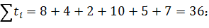 t1 =8; t2 =4; t3 =2; t4 =10; t5 =5; t6 =7. 1. Найдём продолжительность обработки детали при последовательном движении по формуле: Тпосл n – количество деталей в партии; ti - время обработки одной детали по всем операциям; m – количество операций;