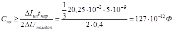 где:∆Iun - максимальное значение переменной составляющей тока потребления; tнар - длительность импульса тока; ∆Uпом.доп - допустимое значение импульсной помехи. В качестве ∆Iun берут, как правило, 1/3 от значения тока короткого замыкания Iкз по выходу микросхемы, который для микросхем серии К555 можно найти как: