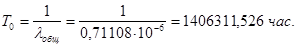 Тогда вероятность неисправной работы будет равна: Q(t) = 1- P(t) = 1- 0,989953 = 0,00071083. Наработка на отказ составит: