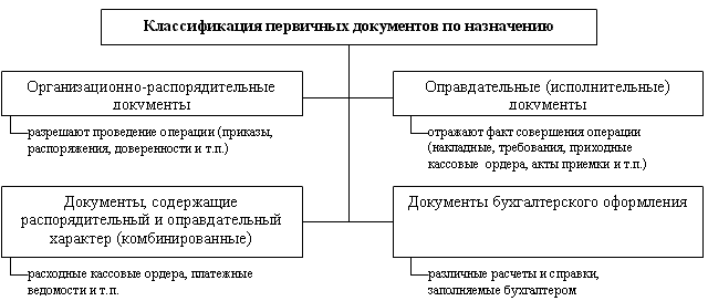 К организационно–распорядительным документам относятся приказы, распоряжения, указания, доверенности и т.п. Эти документы содержат распоряжение, разрешение, поручение либо право на проведение хозяйственной операции. Информация, содержащаяся в этих документах, не заносится в учетные регистры, так как в них не отражается сам факт совершения операции. К оправдательным (исполнительным) документам относятся накладные, требования, приходные ордера, акты приемки и т.п. Оправдательные документы составляются в момент совершения операции, отражая ее исполнение, и представляют собой источник первичной учетной информации или первый этап учетного процесса. Информация, содержащаяся в них, заносится в учетные регистры. Существует целый ряд документов, сочетающих в себе разрешительный и оправдательный характер, такие документы относят к комбинированным (платежная ведомость, расходный кассовый ордер). Документы бухгалтерского оформления заполняются бухгалтером для оправдания записей, не имеющих других документальных подтверждений. Это различные расчеты и справки, которые играют вспомогательную роль и составляются для облегчения и ускорения работы бухгалтерии (справка бухгалтерии на сторнирование ошибочно сделанной записи; распределение прибыли предприятия, общепроизводственных, общехозяйственных, внепроизводственных расходов и др.). Информация из таких документов также заносится в учетные регистры. |