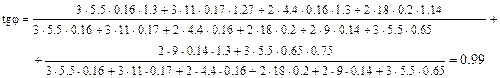 По графикам, приведенным в /21/, в зависимости от Ки и nэ определяем Км =1,69. Тогда активная мощность, вычисляемая по формуле (6.1), равна Pр =0.23·1.69·(6·5.5+3·11+2·4.4+2·18+2·9) = 50.80кВт. Средневзвешенное значение tgj группы электроприемников вычисляем по формуле (6.6)
