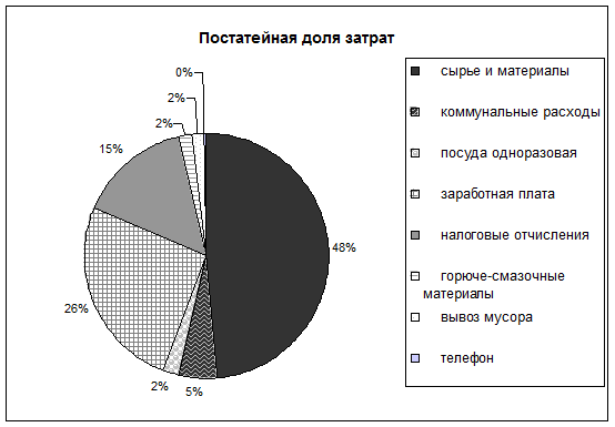 При изменение постоянный и переменных издержек, чувствительность бизнес плана, менее заметно. Расчет точки безубыточности Н - постоянные расходы К – количество людей V – удельные переменные затраты Рп – переменные затраты П - прибыль Вр – выручка от реализации Дм – маржинальный доход Т – точка безубыточности 1)Определяем переменные затраты на весь выпуск продукции. Рп=V*K 33120 чел * 57,6 руб = 1900500руб. 2)Определяем прибыль от реализации продукции. П=Вр-(Рп+Н) П=11000000-1900500-2935404=6164096 руб. 3)Определяем маржинальный доход Дм=Н+П=Вр-Рп Дм= 11000000-1900500=9099500 4)Рассчитываем точку безубыточности в натуральном и стоимостном выражении. Т=Вр*Н/Дм – стоимостное выражение Т=К*Н/Дм – натуральное выражение Т=11000000*2935404/9099500=3548484 млн. Т=33120*2935404/9099500=10599 чел. |