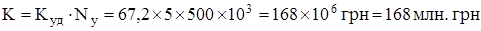В том числе затраты на: -строительные работы -монтажные работы -оборудование Итого: 990 млн. грн. При этом удельные капитальные вложения в главный корпус рассчитываются по формуле: