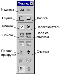Microsoft Excel предоставляет пользователю возможность создавать свои электронные формы для ввода данных. Для этого предназначены панели инструментов Forms (Формы), Control Toolbox (Элементы управления)
