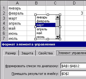 . Список можно связать с ячейкой рабочего листа, и выбранный из списка элемент будет отображен в этой ячейке (свойство LinkedCell
