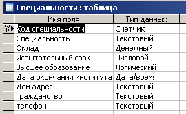 В ячейку В3 (столбец В, строка 3) занесена формула =А1+А2, то есть нужно сложить числа, находящиеся в предыдущем (левом) столбце А и двух предыдущих строках, 1 и 2. При копировании ячейки В3, например, в ячейку Е5 соотношение в формуле сохраняется: автоматически складываются числа, находящиеся в предыдущем левом столбце в и двух предыдущих строках, 3 и 4. Аналогично, при копировании ячейки В3 в ячейку В7 формула изменяется на =А5+А6. 2. Система управления базой данных MS Access 2.1 Понятие и назначение базы данных и систем управления БД База данных – это информационная модель, позволяющая упорядоченно хранить данные о группе объектов, обладающих одинаковым набором свойств. Программное обеспечение, предназначенное для работы с базами данных, называется система управления базами данных (СУБД). СУБД используются для упорядоченного хранения и обработки больших объемов информации. СУБД организует хранение информации таким образом, чтобы ее было удобно: -просматривать, -пополнять, -изменять, -искать нужные сведения, -делать любые выборки, -осуществлять сортировку в любом порядке. Системы управления базами данных позволяют объединять большие объемы информации и обрабатывать их, сортировать, делать выборки по определенным критериям и т. п. Современные СУБД дают возможность включать в них не только текстовую и графическую информацию, но и звуковые фрагменты и даже видеоклипы. Простота использования СУБД позволяет создавать новые базы данных, не прибегая к программированию, а пользуясь только встроенными функциями. СУБД обеспечивают правильность, полноту и непротиворечивость данных, а также удобный доступ к ним. 2.2 Структурные элементы БД (поле, запись, файл). Логическая структура записи файла БД Понятие базы данных тесно связано с такими понятиями структурных элементов, как поле, запись, файл. Поле, - элементарная единица логической организации данных, которая соответствует неделимой единице информации - реквизиту. Для описания поля используются следующие характеристики: -Имя, например. Фамилия, Имя, Отчество, Дата рождения; -Тип, например, символьный, числовой, календарный; -Длина, например, 15 байт, причем будет определяться максимально возможным количеством символов. -Точность, для числовых данных, например два десятичных знака для отображения дробной части числа. Запись - совокупность логически связанных полей. Экземпляр записи - отдельная реализация записи, содержащая конкретные значения ее полей. Файл (таблица) - совокупность экземпляров записей одной структуры. Описание логической структуры записи файла содержит последовательность расположения полей записи и их основные характеристики.