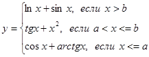 2. Формула: =ЕСЛИ(A4>B$2;(LN(A4)+SIN(A4)))+ЕСЛИ(И(A$2<A4;A4<=B$2);(TAN(A4)+СТЕПЕНЬ(A4;2)))+ЕСЛИ(A4<=A$2;(COS(A4)+ATAN(A4))) 3. Function z(a, b, x) If x > b Then z = Log(x) + Sin(x) End If If a < x And x <= b Then z = Tan(x) + x ^ 2 End If If x <= a Then z = Cos(x) + Atn(x) End If End Function