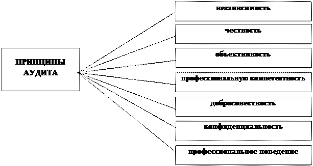 Независимость - принцип аудита, заключающийся в обязательности отсутствия у аудитора при формировании его мнения финансовой, имущественной, родственной или какой-либо иной заинтересованности в делах проверяемого экономического субъекта, превышающей отношения по договору на осуществление аудиторских услуг, а также какой-либо зависимости от третьих лиц. Требования к аудитору в части обеспечения независимости и критерии того, что аудитор не является зависимым, регламентируются нормативными документами по аудиторской деятельности, а также этическими кодексами аудиторов. Независимость аудитора должна обеспечиваться как по формальным признакам, так и с точки зрения фактических обстоятельств. Честность - принцип аудита, заключающийся в обязательной приверженности аудитора профессиональному долгу, а также следовании общим нормам морали. Объективность - принцип аудита, заключающийся в обязательности применения аудитором непредвзятого, беспристрастного и самостоятельного, не обусловленного каким-либо влиянием, подхода к рассмотрению любых профессиональных вопросов и формированию суждений, выводов и заключений. Профессиональная компетентность - принцип аудита, заключающийся в том, что аудитор должен владеть необходимым объемом знаний и навыков, позволяющим ему обеспечивать квалифицированное, качественное, отвечающее современным требованиям оказание профессиональных услуг. Аудиторской организации для обеспечения квалифицированного проведения аудита привлекает подготовленных, профессионально компетентных специалистов и осуществляет контроль за качеством их работы. Аудиторская организация не имеет право оказывать услуги, выходящие за рамки профессиональной компетентности и пределы ее полномочий в соответствии с имеющимися лицензиями на осуществление аудиторской деятельности. Добросовестность - принцип аудита, заключающийся в обязательности оказания аудитором профессиональных услуг с должной тщательностью, внимательностью, оперативностью и надлежащим использованием своих способностей. Принцип добросовестности подразумевает усердное и ответственное отношение аудитора к своей работе, но не должен трактоваться как гарантия безошибочности в аудиторской деятельности. Конфиденциальность - принцип аудита, заключающийся в том, что аудиторы и аудиторские организации обязаны обеспечивать сохранность документов, получаемых или составляемых ими в ходе аудита, и не вправе передавать эти документы или их копии (как полностью, так и частично) каким бы то ни было третьим лицам либо устно разглашать содержащиеся в них сведения без согласия собственника (руководителя) экономического субъекта, за исключением случаев, предусмотренных законодательными актами Российской Федерации. Принцип конфиденциальности должен соблюдаться неукоснительно, невзирая на то, что разглашение или распространение информации об экономическом субъекте не наносит ему по представлениям аудитора материального или иного ущерба. Соблюдение принципа конфиденциальности обязательно вне зависимости от продолжения или прекращения отношений с клиентом и без ограничения по времени. Аудиторская организация не вправе использовать для своей выгоды или в интересах третьих лиц конфиденциальную информацию о делах клиентов, ставшую ей и