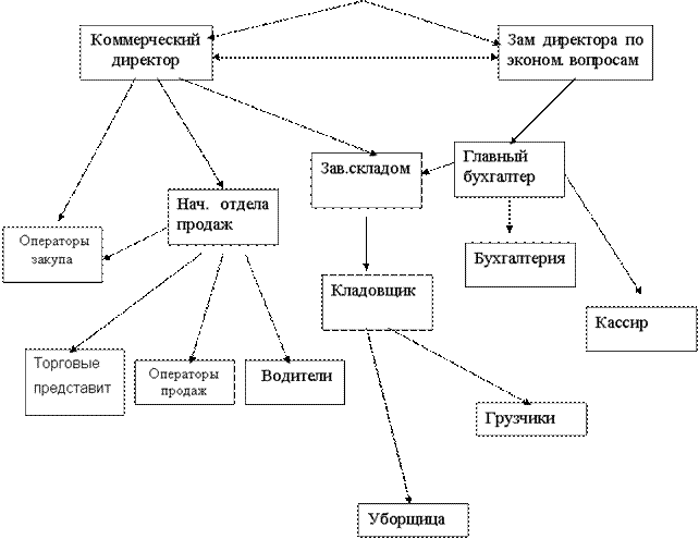 Дата «__»________________________200__г. 2. составленный в расширенной форме перечень ответов аудитора по тематике проведения проверки; 3. использованы учредительные документы организации, первичные документы бухгалтерского учета, при отсутствии возможности пользоваться первичными документами использовались ксерокопии. 4. Источники проверки расчетов по оплате труда Свою работу аудиторы начинают с ознакомления с проверяемой организацией, для чего изучают учредительные документы, вид деятельности, учетную политику. ООО ТК «Терем» занимается торгово-закупочной деятельностью продуктов питания. Схема 1.3 Организационная структура ООО ТК «Терем» Генеральный Директор