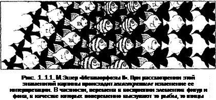 и разного цвета. Веб остальное есть результат интерпретации, истолкования. В частности, истолкования, которое зритель проводит с помощью художника. Мы впервые видим мир глазами Гогена, открываем для себя совершенно новое в давно примелькавшемся пейзаже, глядя на картины Левитана. К. Г. Паустовский в автобиографическом романе «Повесть о жизни» очень точно описал это впечатление открытия, понимания чего-то ранее недоступного при неожиданном для него самого восприятии картин Пиросманишвили. «В день приезда я только мельком взглянул на них... Но все же меня все время не оставляла непонятная тревога — как будто меня быстро провели за руку через удивительную, совершенно причудливую страну, как будто я уже ее видел или она мне давно приснилась, и с тех пор я никак не дождусь, чтобы осмотреться в этой стране, прийти в себя и узнать ее во всех подробностях». И далее: «Я взглянул на эту стену и вскочил. Сердце у меня начало биться тяжело и быстро. Со стены смотрел мне прямо в глаза — тревожно, вопросительно и явно страдая, но не в силах рассказать об этом страдании — какой-то странный зверь, напряженный как струна. Это был жираф. Простой жираф, которого Пиросмани, очевидно, видел в старом тифлисском зверинце. Я отвернулся. Но я чувствовал, я знал, что жираф пристально смотрит на меня и знает все, что творится у меня на душе» (К. Паустовский, 1982). Идеи нового видения, оригинального, свойственного художнику понимания вещей в явном виде звучат и в теоретических работах современных художников. Вот что писал Василий Кандинскцй в книге «О духовном в искусстве»: «Живопись есть искусство, и искусство в целом не есть бессмысленное созидание произведений, расплывающихся в пустоте, а целеустремленная сила; она призвана служить развитию и совершенствованию человеческой души... Живопись — это язык, который формами, лишь ему одному свойственными, говорит нашей душе о ее хлебе насущном; и этот хлеб насущный может в данном случае быть представлен душе лишь этим и никаким другим способом». В этом — ценность настоящей живописи, так как она может дать человеку новое восприятие, открыть другие миры. Зрение способно к восприятию «невозможных фигур» Фигуры, изображенные на рис. 1.13, впервые были «изобретены» в 50-х годах XX века Л. и Р. Пенроузами, а описание самого феномена