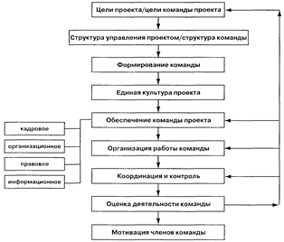 Критериями отбора обычно выступают образование, опыт работы, медицинские характеристики и личные качества. Надо указать, что специалистов по образованием в области управления проектами в настоящее время очень немного и язык может идти или об опыте участия в проекту, или о дополнительном образовании в сфере проекта-менеджмента. Для выполнения многих видов работ по проекту нужны определенные физические качества, которые должны быть подтверждены соответствующими медицинскими документами. Важное значение для сработанности команды, для эффективной работы в проекте имеют личные характеристики работника век, семейное состояние, индивидуальные психологические характеристики (характер, темперамент, способности, склонности, потребности и интересы) и пр. Для работы в проекте преобладающий преимущественно молодой век персонала от 25 до 45 лет, что характеризуется высокой мерой активности, высокой способностью к обучению и способностью к инновационному типу мышления, уважай компенсирует отсутствие специального образования и опыта работы. Одним из способов отбора есть тестирование претендентов. Для достоверности полученных данных желательно провести сравнения результатов разных методов отбора, например тестов и бесед. 4. Планирование работы команды Планирование деятельности команды должно начинаться еще на стадии прединвестиционных исследований, на этапе определения возможного руководителя проекта. После определения структуры команды и избрание менеджера проекта его задачей есть тщательное планирование работы всех функциональных подразделов команды для эффективного использования и распределения ресурсов, выделенного на проект. Первым этапом этой работы есть кадровое планирование определения необходимого количественного и качественного состава команды и персонала проекта. Дальнейший процесс требует активного участия всех членов команды в складывании планов работы. Основой складывания плана работы команды есть план разработки и реализации проекта. Организация работы команды проекта отличается от организационных норм формализованной организации. Одним из принципов командной работы выступает распределение обязанностей и ответственности за достижение поставленных целей, а не жесткое закрепление функций, которые выполняются. Принцип предусматривает отход от детального разделения труда в управлении проектом и деятельность отдельных подразделов команды путем введения командной ответственности за решение конкретных задач. Специалисты по реорганизации бизнеса М. Хаммер и Дж. Чампи подчеркивают гибкость такой системы управления, ее способность быстро перестраиваться в ответ на изменения в проекте. Этот принцип разрешает довольно строго планировать деятельность команды проекта и ее отдельных подразделов, контролировать и оценивать деятельность ее членов, использовать действующую систему стимулирования по критерию цели/результата. Функциональные подразделы команды сначала представляют собой группы равных по статусу работников с одним официальным лидером в разделе, нацеленные на решение конкретных задач по управлению проектом.В условиях максимизации поставленных задач очень скоро обнаруживается неравномерность профессионального и личного роста членов команды, появляются потенциальные лид
