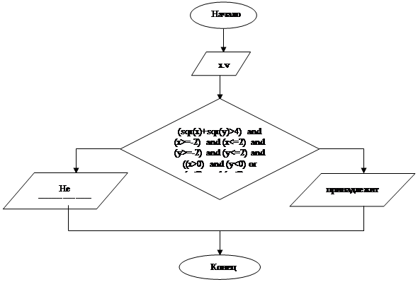 3.2 Решение задачи3.2.1 Постановка задачиСоставить программу, проверяющую принадлежность точки с координатами (х, у) заштрихованной области.