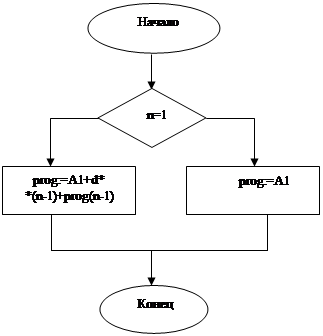 3.4.3 ПрограммаUses graph,crt; Var gd,gm: integer; Begin gd: =0; gm: =0; Initgraph (gd, gm,' '); setcolor (5); Line (100, 200,250, 200); Line (250, 200, 209,150); Arc (157,183, 61, 195, 60); Setfillstyle (0,3); Floodfill (256, 200,5); Ellipse (200, 135, 75, 233, 15, 20); Ellipse (200, 135, 303, 75, 15, 20); Ellipse (208, 139, 303, 91, 15, 24); setfillstyle (1,8); floodfill (220,145,5); Arc (120, 200, 180, 0,10); Setfillstyle (1,1); Floodfill (125, 202,5); Arc (120, 200, 180, 0, 15); Arc (130, 200, 260, 0, 15); Arc (200, 200, 180, 0,10); setfillstyle (1,1); Floodfill (125, 202,5); Arc (120, 200, 180, 0, 15); Arc (130, 200, 260, 0, 15); Arc (200, 200, 180, 0,10); Setfillstyle (1,1); Floodfill (200, 202,5); Arc (200, 200, 180, 0, 15); Arc (210, 200, 260, 0, 15); Line (150, 90, 150, 124); Line (155, 90, 155, 123); Line (150, 90, 155, 90); Setfillstyle (1,1); Floodfill (153, 100,5); Arc (144, 83, 41, 310,10); Arc (158, 83, 259, 126,10); Setfillstyle (1,1); Floodfill (144, 83,5); Circle (144, 83,5); Setfillstyle (1,2); Floodfill (144, 83,5); Circle (158, 83,5); Setfillstyle (1,2); Floodfill (158, 83,5); Circle (255, 200,5); Setfillstyle (1,4); Floodfill (255, 200,5); Setfillstyle (1,8); Floodfill (200, 150,5); Circle (215, 177,7); Setfillstyle (1,9); Floodfill (215, 177,5); Setfillstyle (1, 14); floodfill (121, 200,5); readkey; closegraph; end. 3.5 Решение задачи3.5.1 Постановка задачиДаны первый член и разность арифметической прогрессии. Написать рекурсивную функцию для нахождения суммы n первых членов прогрессии. 3.5.2 Таблица идентификаторов