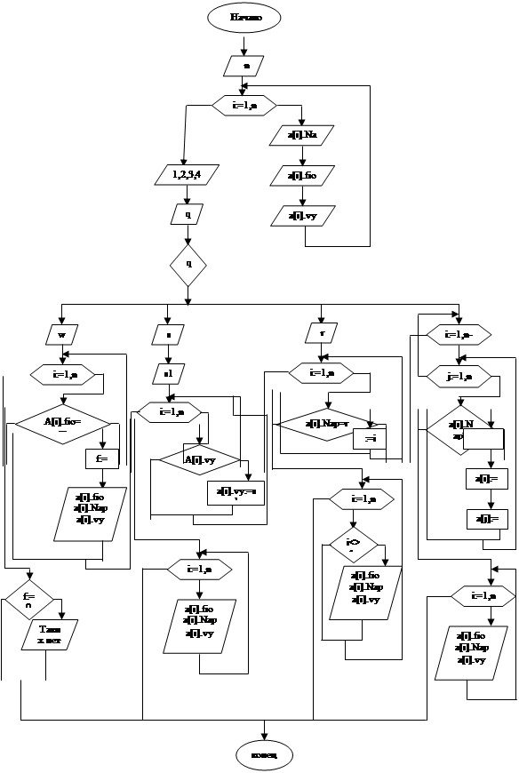 writeln (i,’ ’,'машинист ',a [i]. fio,' ','Направление ',a [i]. Nap);