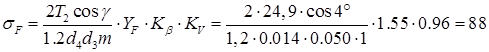 де YF=1.55 – коефіцієнт форми зуба.