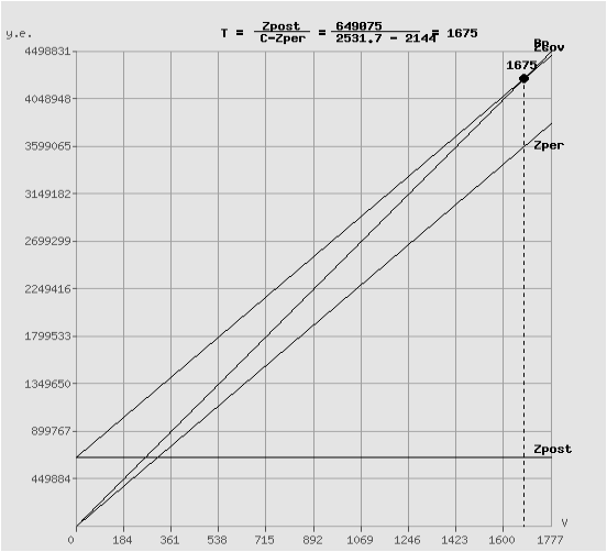График безубыточности общих затрат номерного фонда гостиницы «Космос» представлен на рисунке 2.3: