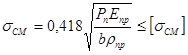где Нормальное усилие из условия прочности оси ролика на изгиб Нормальное усилие из условия невыдавливания смазки Отношение Под действием нормальной силы в материале ролика и кулачка возникают контактные напряжения смятия