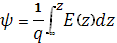 где U(∞)-потенциальная энергия электронов в квазинейтральном объеме полупроводника. Поскольку на дне зоны проводимости кинетическая энергия электронов равна нулю, то изменение потенциальной энергии по координате должно точно так же изменить энергетическое положение дна зоны проводимости Ec , (а соответственно и вершины валентной зоны Ev .) На зонных диаграммах это выражается в изгибе энергетических зон[5]. Величина разности потенциалов между квазинейтральным объемом и произвольной точкой ОПЗ получила название электростатического потенциала: