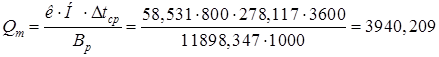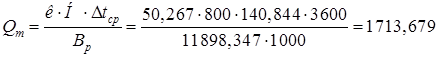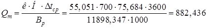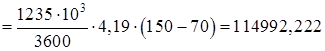 1.4.3 Розрахунок топки Розрахунок теплообміну в топках водогрійних котлів ґрунтується на додатку теорії подоби до топкових процесів. На базі цієї теорії розроблений нормативний метод розрахунку котельних агрегатів [1]. Об'єм топки (з заводських характеристик) Vт , м3 V т = 388,0. (1.18) Видима теплова напруга топкового об'єму - дійсне розрахункове qv , кВт/м3