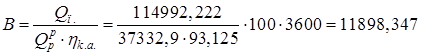 Сумарна об’ємна доля трьохатомних газів і водяних пар (з розрахунку на ЕОМ при α=1,15)