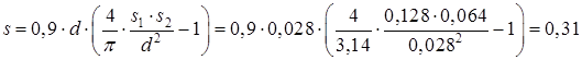 Відстань від осей труб до стін (з заводських характеристик) e, мм e=30. (1.23) Площі стін зайнятих екранами (з заводських характеристик): - бічних F бок. , м2 : (1.24) - фронтового і заднього Крок екранних труб (з заводських характеристик)
