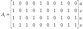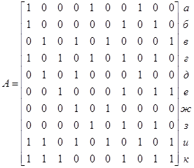 Удаляем строки б и е (поглощаются строкой к), строки в, д, ж (поглощаются строкой и) и строку з (поглощается строкой г). Получим матрицу 1 2 3 4 5 6 7 8 9 10