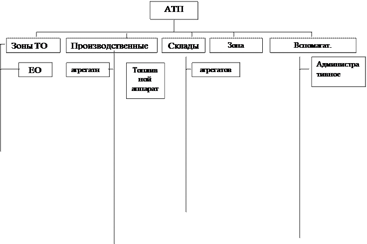 Рисунок 1- Структура комплексного АТП ОТК контролирует техническое состояние ПС, проверяет качество работы всех подразделений производства, руководит работой станции диагностики. ОГМ занимается ремонтом производственного оборудования и инструмента, помещений, энергосилового и санитарно-технического хозяйства. ОТС осуществляет материально-техническое снабжение различными материалами и запчастями и организует работу складского хозяйства. 2 . Технологический расчёт предприятия. 2.1. Расчёт производственной программы по техническому обслуживанию и ремонту автомобилей. Периодичность ТО – 1: