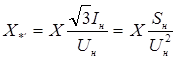 де X - заданий індуктивний опір, Ом на фазу. Звичайно відносні опори елементів (генераторів, двигунів, трансформаторів і реакторів) задаються при номінальних умовах, тобто за базисні величини прийняті номінальні. Їхні величини визначаються по вираженню (1.2), де базисні величини заміняються відповідними номінальними, тобто