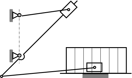 1 2 3 6 5 5 6 4 мал. 2). 1.2 Структурний аналіз механізму. Виконуємо аналіз кінематичного ланцюгу (мал. 2):1-6 – обертальна кінематична пара 5-го класу; 1-2 - обертальна кінематична пара 5-го класу; 3-6 - обертальна кінематична пара 5-го класу; 3-4 - обертальна кінематична пара 5-го класу; 4-5 - обертальна кінематична пара 5-го класу; 2-3 - поступальна кінематична пара 5-го класу; 5-4 - поступальна кінематична пара 5-го клас. Проаналізуємо кінематичні ланки (мал. 2): 1 – кривошип; 2 – куліса; 3 – коромисло; 4 – шатун; 5 – повзун; 6 – стояк. Визначаємо рухомість механізму (мал.1) за формулою Чебишева: