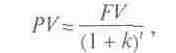 Ця формула, відома як формула І. Фішера, За невеликих темпів інфляції в межах до 10 % річних величиною rb звичайно нехтують. При розрахунках окупності інвестицій обов'язково визначається так звана теперішня вартість ( PV— Present Value) майбутніх доходів (витрат) шляхом дисконтування їх номінальних величин ( FV— Future Value ) за формулою