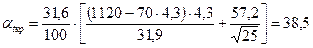 К – коэффициент, учитывающий разницу между принятым фактическим коэффициентом крутки пряжи и коэффициентом критической крутки. Вычислим коэффициент К. Для этого необходимо из справочника [2] выбрать фактические коэффициенты крутки. В нашем задании фактические коэффициенты крутки следующие: для основы Т = 25,0 текс α t