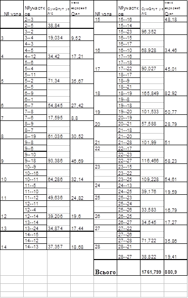 Розрахункова витрата кожного із всмоктувальних водоводів визначається за формулою: Qвс.в = Qмакс.н. с / (nвс – 1),(2.16)де Qмакс.н. с – максимальна подача насосної станції, м3 /год.;nвс – кількість всмоктувальних водоводів. nвс = 2. Таблиця 5.1. Визначення путьових витрат.