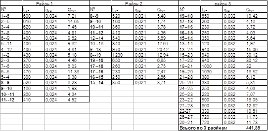 Шляхові витрати ділянок: Qпут = qуді * ln, (2.10) де ln - розрахункова довга розглянутої ділянки, м. Вузлові витрати для випадку максимального водоспоживання: Qузі