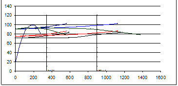 По визначеним вище витраті й напору приймаються насоси марки Робочі характеристики насоса наведені на рис.6.4, тип комплектуючого електродвигуна – АО3/355М-6УЗ Розрахункова подача насосної станції при за (2.21) Q1 н. з = 897,1 + 97,5 = 906,6 л/с. 2.7.4.2 Аналіз роботи насосів й уточнення їхніх робочих характеристик Характеристика водоводів розраховується для трьох розрахункових випадків і для всіх режимів роботи і наведена у табл. 6.4 Розрахункові режими забезпечуються: - на першому ступеню: одним насосом марки Д 630-90. - на другому ступеню: групою із трьох паралельно працюючих насосів тієї ж марки . Таблиця 6.4 - Розрахунок характеристик водоводів Д = 800 мм, l = 2800 мм,