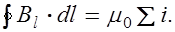 Н – напруженість магнітного поля, А/м; В – магнітна індукція, Тл. Закон повного струму через поверхню, натягнуту на контур l можна записати так: