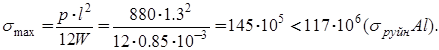 1-2 –ізолятори, 3 – шина, l – відстань між ізоляторами. І) На шину діє рівномірно розподілене електродинамічне зусилля. Зусилля на одиницю довжини позначимо p[p] – Н/м. В шині мах. напруження