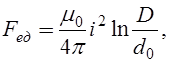 3. Електродинамічні сили в різних умовах роботи, характерних для електричних апаратів 3.1 Практичне застосування метода енергетичного балансу В якості прикладу практичного застосування методу енергетичного балансу розглянемо таку задачу: Знайдено, що індуктивність L петлі визначається за формулою: