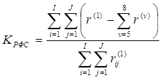 v – види рішень від r (5) до r (7) ; r (1) – фактична кількість принятих рішень; r (5) – рішення, які не відповідають даному суб’єкту управління; r (6) – рішення, які можливо скоротити; r (7) – рішення, які необхідно делегувати другому суб’єкту управління; r (8) – рішення, які необхідно елімінувати у других суб’єктів і закріпити за даним суб’єктом управління; i – кількість функцій агромаркетингу; j – кількість стадій технології агромаркетингу.