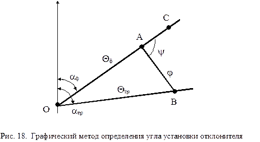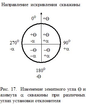 6. Ориентирование отклонителей Ориентирование отклонителей заключается в совмещении направления их действия с направлением необходимого отклонения ствола скважины. Ориентирование производится относительно фиксированной в каком-либо определенном положении плоскости. В наклонных скважинах такой плоскостью чаще всего является апсидальная, т.е. вертикальная плоскость, проходящая через ось скважины, а в вертикальных - плоскость магнитного или истинного меридиана. Угол между фиксированной плоскостью и плоскостью, в которой происходит искусственное искривление ствола скважины (плоскость отклонения), называется углом установки отклонителя. Угол установки измеряется от фиксированной плоскости по часовой стрелке и может изменяться от 0 до 360О . Для вертикальных скважин угол установки отклонителя равен азимуту требуемого искривления скважины. В наклонных скважинах при угле установки y равном 0О происходит искривление ствола в сторону увеличения зенитного угла Q. При угле установки y = 180О в процессе бурения скважины с отклонителем зенитный угол ее уменьшается. Азимутальный угол в том и другом случае остается неизменным. Если y = 90О , то при искривлении азимут скважины увеличивается, а при y = 270О - азимут уменьшается при сохранении зенитного угла. При условии, что 0О < y < 90О , при искривлении происходит увеличение зенитного угла Q и азимута a. Если 90О < y < 180О , то азимут возрастает, а зинитный угол уменьшается. Если 180О < y < 270О при искривлении происходит уменьшение зенитного угла и азимута. Если 270О < y < 360О зенитный угол возрастает, а азимут уменьшается (рис. 17). Точное значение угла установки отклонителя при требуемом изменении зенитного угла и азимута может быть определено различными методами: аналитически, графически несколькими способами, по номограммам, предложенными разными авторами, с помощью специальных приборов. Известные формулы для расчета угла установки отклонителя достаточно громоздки и содержат значение угла пространственного искривления скважины на интервале применения отклонителя, т.е. предварительно необходимо задаться длиной этого интервала. Однако фактическая длина интервала искривления практически никогда не совпадает с предварительно принятой, поэтому в расчете угла установки появляется погрешность. Наиболее просто и с достаточной степенью точности угол установки отклонителя может быть определен графически. Для этого от направления, условно принятого за северное (рис. 18), откладывается фактический aф (на забое скважины) и требуемый aтр (в конце интервала искривления) азимутальные углы скважины. По полученным направлениям в принятом линейном масштабе (например, 1О = 1 см) откладываются соответственно фактический Qф и требуемый Qтр зенитные углы. Требуемые азимутальный aтр и Qтр углы определяются из необходимости выведения скважины в заданную проектом точку по ранее приведенной методике. Полученные точки А и В соединяются, образовавшийся при этом угол ВАС равен искомому углу установки y. Он измеряется от направления АС по часовой стрелке. Величина отрезка АВ на рис. 18 в принятом линейном масштабе равна требуемому углу пространственного искривления скважины. Зная из технической характеристики отклонителя интенсивность искривления скважины i при его применении, можно определить длину интервала искусствен