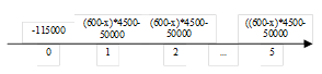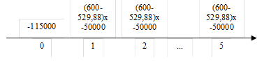 Побудуємо потік інвестиційних платежів: Рис. 1. Потік інвестиційних платежів. Розрахуємо амортизаційні відрахування. Амортизаційні відрахування=Вартість обладнання*Ставка амортизації Вартість обладнання=115 тис. грн. Ставка амортизації=24% Дані розрахунків амортизаційних відрахувань занесемо у таблицю 5. Таблиця 5. Амортизаційні відрахування.