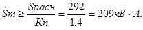 де Sрасч - розрахункове навантаження по таблиці (5.1); Кп - коефіцієнт припустимого аварійного перевантаження, рівний 1,4. Розрахункове навантаження СН підстанції визначається по формулі