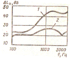 При оценке ОВПФ производственной среды выявлена необходимость проведения мероприятий по снижению уровня шума и вибрации, а также спроектировать местное освещение рабочего места. 3.1 Снижение шума на рабочем месте Для снижения шума механического происхождения используют в основном звукоизолирующие капоты, эффективность звукоизоляции (дБ) которого [5] Δ L к = 17 lg f +13,5 qk – 34 (3.1) f – частота шума, Гц qk - - масса 1м2 капота Зависимость эффективности звукоизолирующих капотов от частоты шума представлено на рисунке 5. Масса однослойного 1м2 капота 1 килограмм, а двухслойного 2 килограмма.