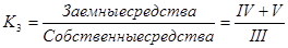 - 0,5 - нормативное значение, - ОС – основные средства, - З – общая величина запасов предприятия. Коэффициент соотношения собственных и заемных средств: