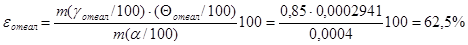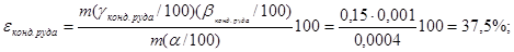 Расчёт: Используя приведенные соотношения, имеем для указанной выше железной руды: Выход концентратаВыход хвостов Проверка: gк +gхв =37+63=100%. Извлечение железа в концентрат