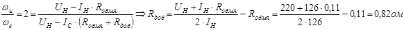 Рисунок 1.2-Механические характеристики двигателя постоянного тока последовательного возбуждения при торможении противовключением При изменении полярности напряжения, подводимого к якорю, двигатель, работавший до этого со скоростью, соответствующей точке А квадранта I, переходит на работу по характеристике ВС (индуктивностью якорной цепи пренебрегаем) в точку В квадранта II. Сохранение неизменной скорости в первый момент переключения двигателя обуславливается механической инерцией электропривода. Под влиянием тормозного момента скорость двигателя уменьшается соответственно характеристике ВС до нулевого значения. При скорости, равной нулю (точка С, рис. 1.2), двигатель в случае торможения для остановки, а не реверса, должен быть отключен от сети. Если такого отключения не произойдет, скорость двигателя начнет увеличиваться в обратном направлении (характеристика СL квадранта III). Вместе с изменением направления вращения изменяет направление ЭДС якоря, которая снова в двигательном режиме направлена встречно напряжению сети. Теперь привод вновь работает в двигательном режиме с постоянной угловой скоростью, будучи переведенным на естественную характеристику при противоположном направлении вращения (точка E характеристики ЕD). Если еще раз изменить полярность напряжения на выводах якоря, то двигатель вновь перейдет в режим противовключения. Торможения и последующее увеличение угловой скорости двигателя в обратном направлении происходят по характеристике FNG. Задача № 73 Электрическая машина постоянного тока с последовательным возбуждением ( Решение: Находим искомое добавочное сопротивление по формуле: