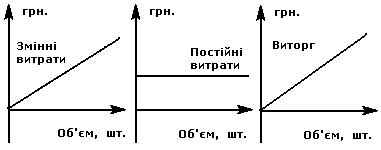 Поведінка постійних і змінних витрат також можна представити графічно.